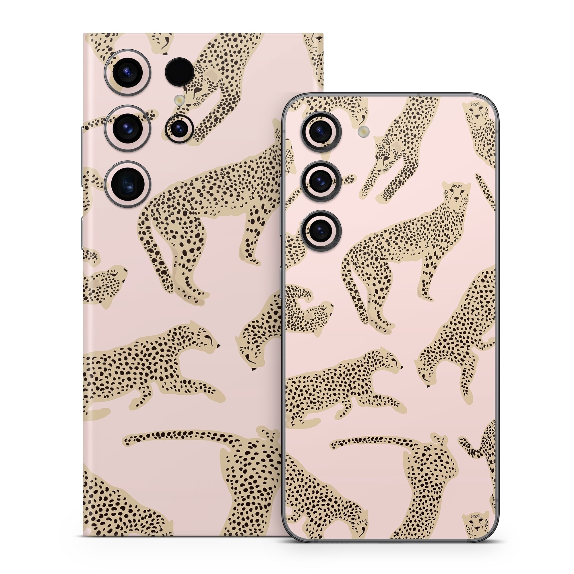 iStyles Samsung Galaxy S23 Series Skin design of Hair, Vertebrate, White, Organ, Textile, Organism, Mammal, Felidae, Font, Line, with pink, yellow, black colors, and tagged with patterns, animals, cheetah, acinonyx, jubatus.