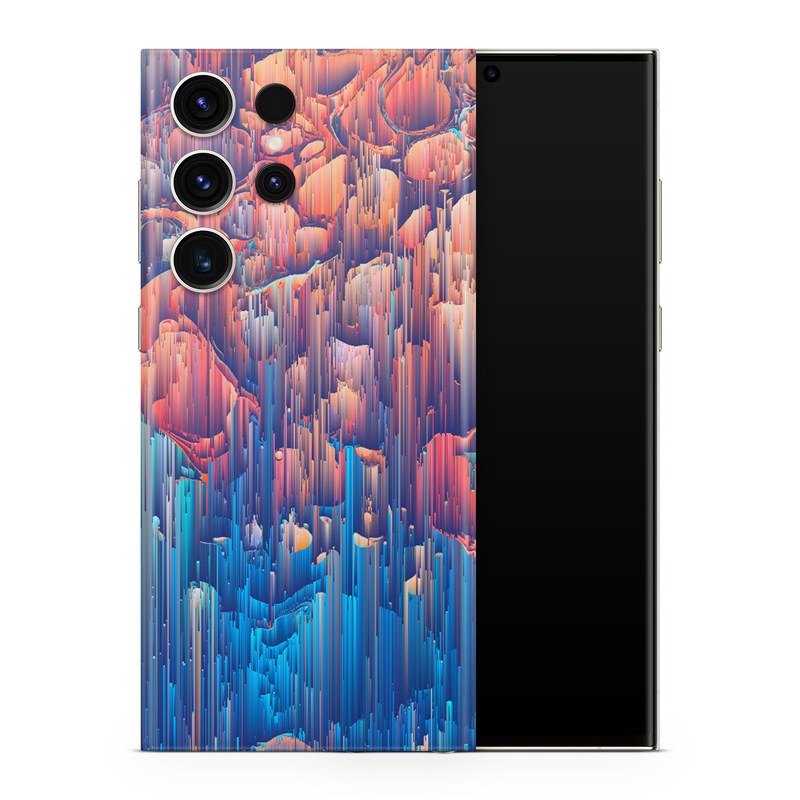 iStyles Samsung Galaxy S23 Series Skin design of Blue, Turquoise, Formation, Sky, Design, City, Geology, Photography, Stock photography, Landscape, with blue, yellow, orange, red, pink colors, and tagged with abstract, space, bright, coral, geometric, geometry, glitch, lines, matrix, space.