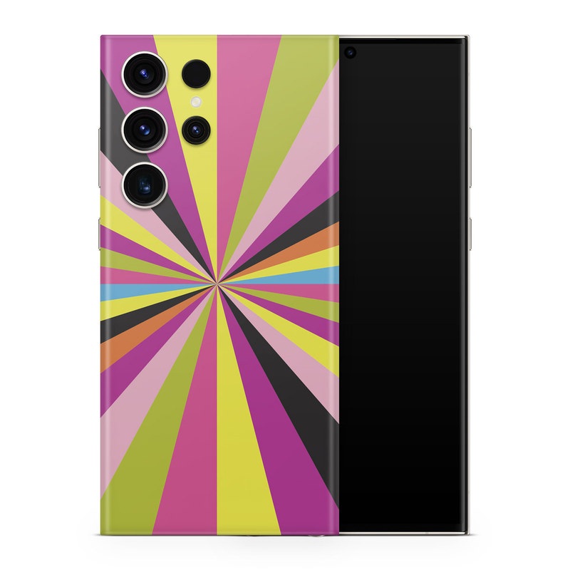 iStyles Samsung Galaxy S23 Series Skin design of Colorfulness, Material property, Magenta, Symmetry, Tints and shades, Creative arts, Pattern, Electric blue, Art, Design, with black, pink, yellow, purple, green, blue, orange colors, and tagged with patterns, pattern, hypnotise.