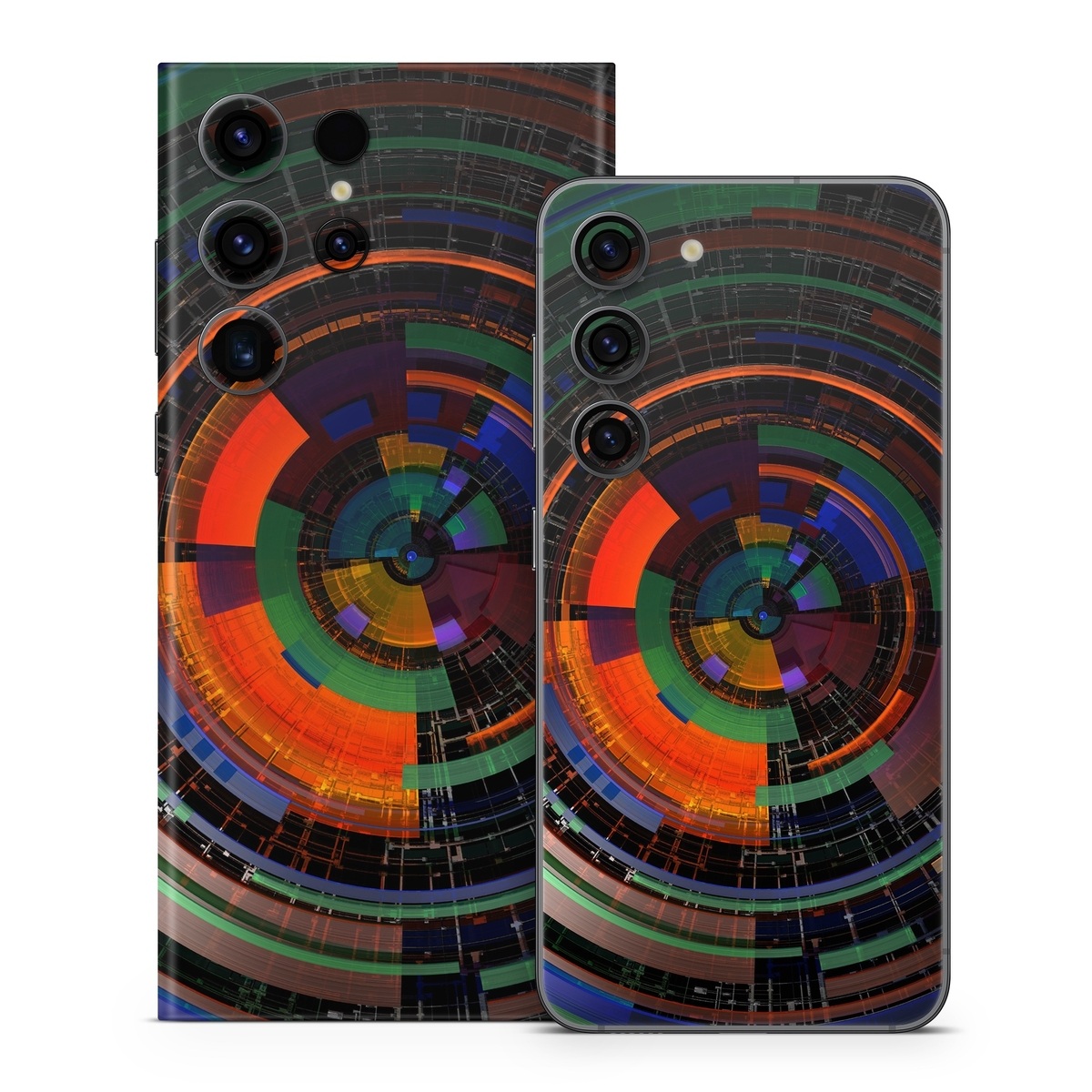 iStyles Samsung Galaxy S23 Series Skin design of Colorfulness, Pattern, Circle, Design, Architecture, Symmetry, Art, Spiral, Psychedelic art, with black, red, blue, green, orange, brown colors, and tagged with abstract, patterns.
