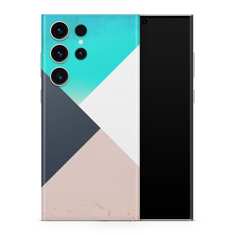 iStyles Samsung Galaxy S23 Series Skin design of Blue, Turquoise, Aqua, Line, Triangle, Design, Material property, Graphic design, Pattern, Architecture, with black, white, brown, blue colors, and tagged with patterns, block, blocking, color, colorblock, geometric, shape, simple.