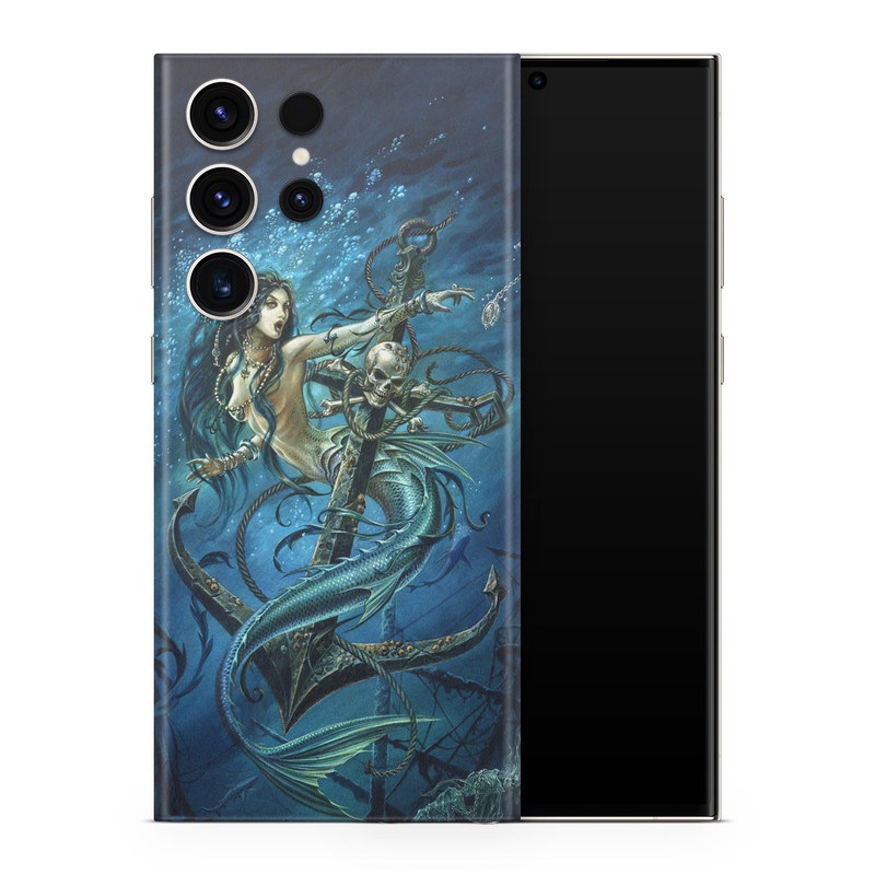 iStyles Samsung Galaxy S23 Series Skin design of Mermaid, Cg artwork, Illustration, Fictional character, Art, Mythology, Mythical creature, Graphic design, with blue, green, white, black colors, and tagged with skulls, people, fantasy, animals.