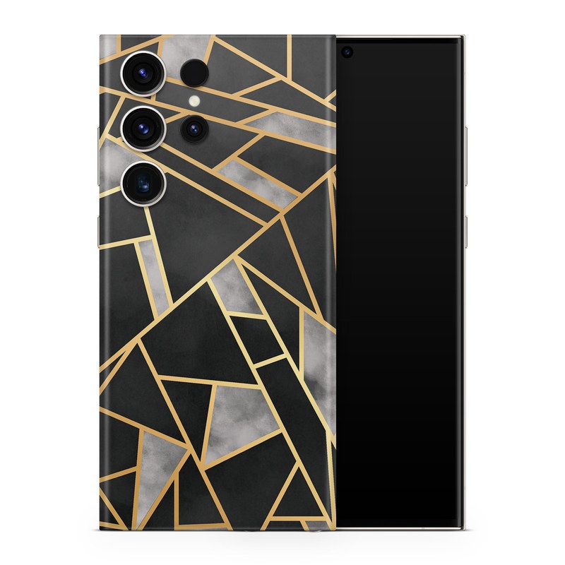 iStyles Samsung Galaxy S23 Series Skin design of Pattern, Triangle, Yellow, Line, Tile, Floor, Design, Symmetry, Architecture, Flooring, with black, gray, yellow colors, and tagged with patterns.