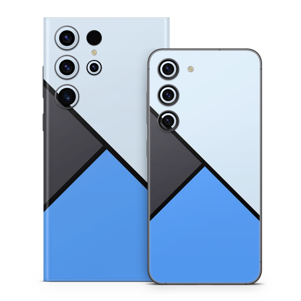 iStyles Samsung Galaxy S23 Series Skin design of Blue, Line, Cobalt blue, Triangle, Azure, Electric blue, Parallel, Symmetry, Font, with blue, gray, black colors, and tagged with patterns, block, blocking, color, colorblock, geometric, shape, simple.