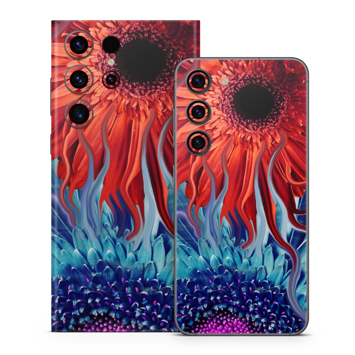 iStyles Samsung Galaxy S23 Series Skin design of Psychedelic art, Pattern, Organism, Colorfulness, Art, Flower, Petal, Design, Fractal art, Electric blue, with red, black, blue, purple, gray colors, and tagged with flowers.