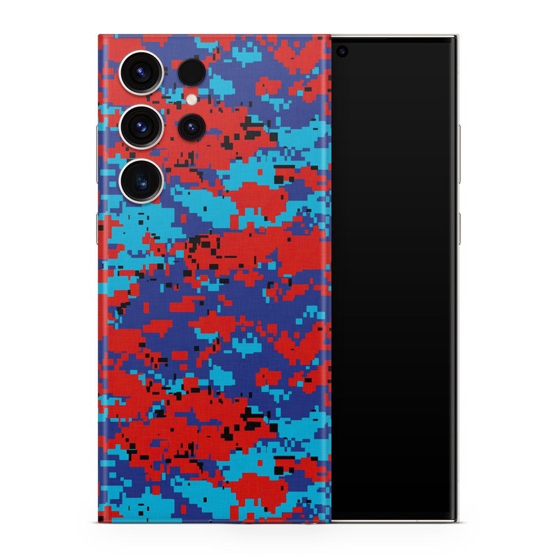 iStyles Samsung Galaxy S23 Series Skin design of Blue, Red, Pattern, Textile, Electric blue, with blue, red colors, and tagged with military, patterns, lookslike, camo, digitalcamo.