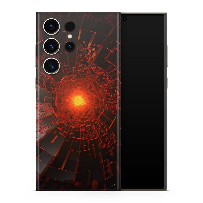 iStyles Samsung Galaxy S23 Series Skin design of Red, Fractal art, Light, Circle, Design, Art, Graphics, Symmetry, Pattern, Space, with black, red colors, and tagged with patterns.