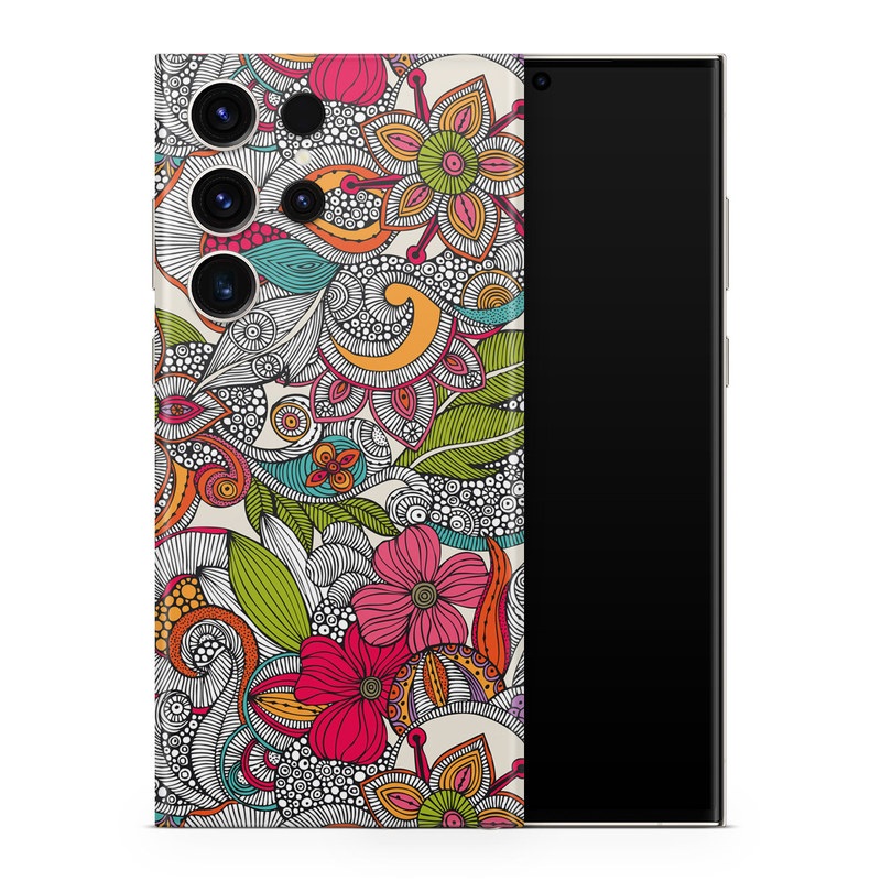 iStyles Samsung Galaxy S23 Series Skin design of Pattern, Drawing, Visual arts, Art, Design, Doodle, Floral design, Motif, Illustration, Textile, with gray, red, black, green, purple, blue colors, and tagged with flowers.