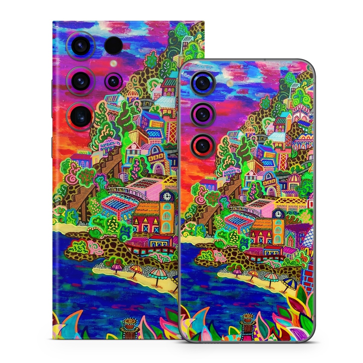 iStyles Samsung Galaxy S23 Series Skin design of Art, Modern art, Visual arts, Painting, with red, blue, yellow, purple, white, green, orange colors, and tagged with fineart, urban, objects, collage, italian, italy, paint, painting, travel, watercolor.
