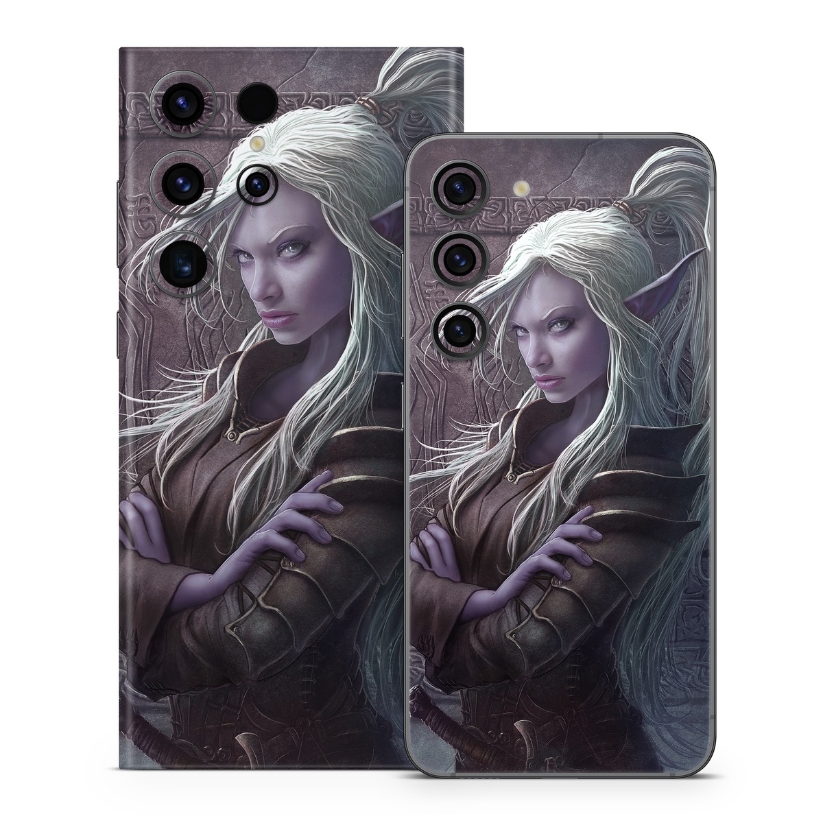 iStyles Samsung Galaxy S23 Series Skin design of Cg artwork, Beauty, Purple, Lady, Illustration, Fictional character, Long hair, Photography, Art, Portrait, with black, gray, purple colors, and tagged with fantasy, people, elf, purple.