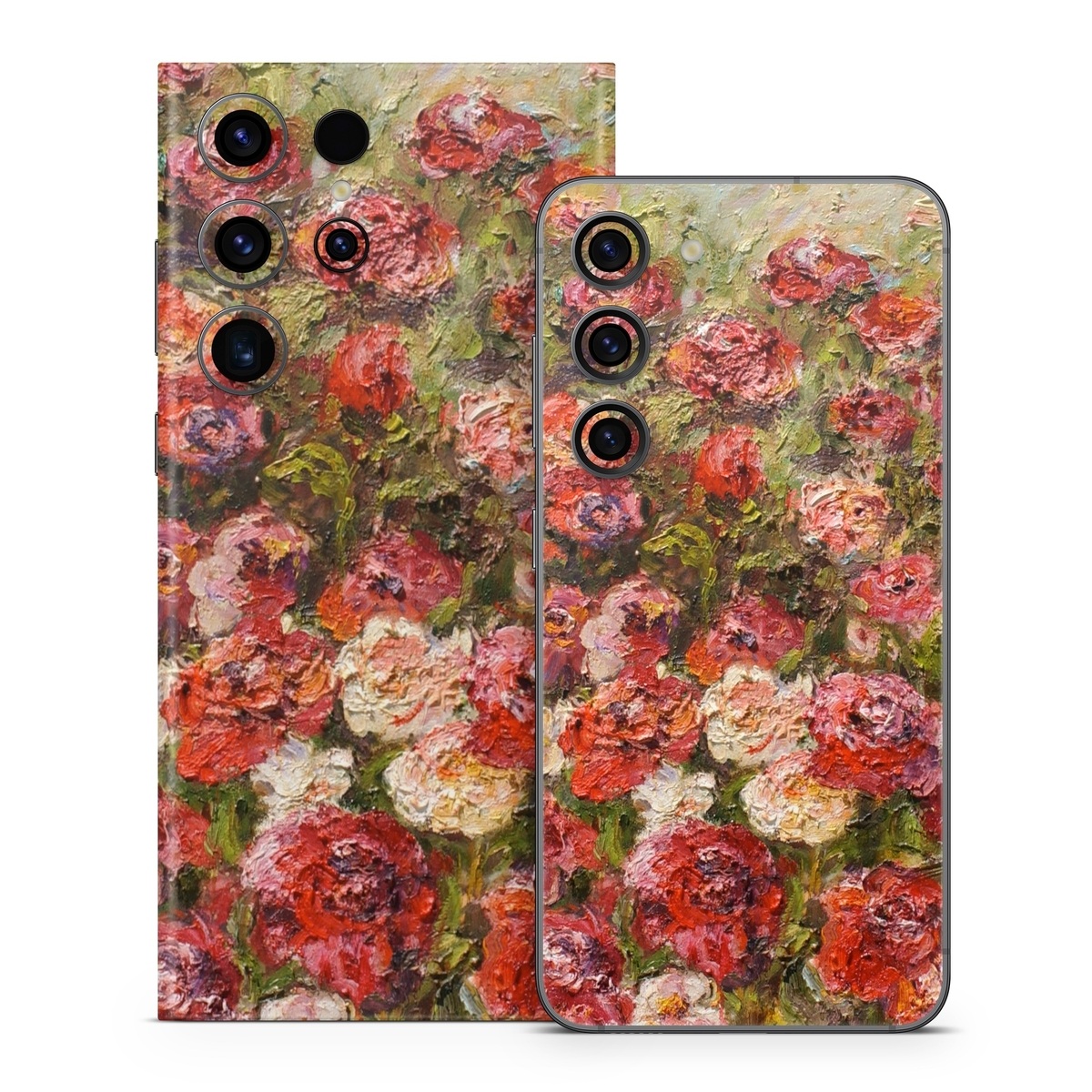 iStyles Samsung Galaxy S23 Series Skin design of Flower, Garden roses, Rose, Plant, Floribunda, Flowering plant, Rosa × centifolia, Rose family, Botany, Petal, with red, black, green, gray colors, and tagged with flowers, fineart.