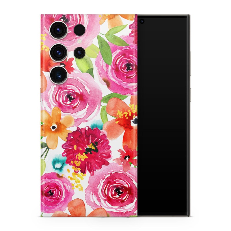 iStyles Samsung Galaxy S23 Series Skin design of Flower, Cut flowers, Floral design, Plant, Pink, Bouquet, Petal, Flower Arranging, Artificial flower, Clip art, with pink, red, green, orange, yellow, blue, white colors, and tagged with flowers, patterns, bloom, blooms, florals, flowers, pink, watercolor.