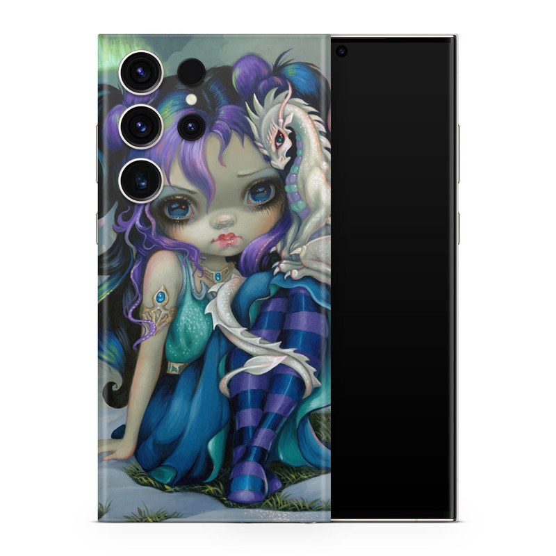 iStyles Samsung Galaxy S23 Series Skin design of Illustration, Fictional character, Cg artwork, Art, Mythology, Anime, Mythical creature, with green, blue, purple, yellow, red, white colors, and tagged with people, fantasy, animals.