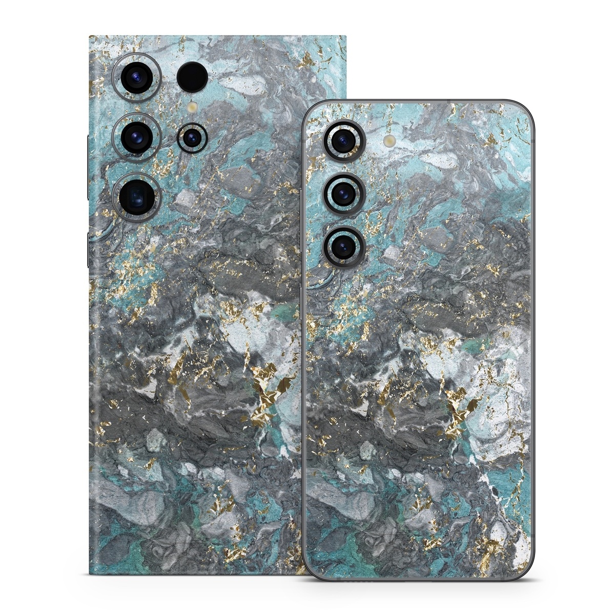 iStyles Samsung Galaxy S23 Series Skin design of Blue, Turquoise, Green, Aqua, Teal, Geology, Rock, Painting, Pattern, with black, white, gray, green, blue colors, and tagged with patterns, lookslike, nature.