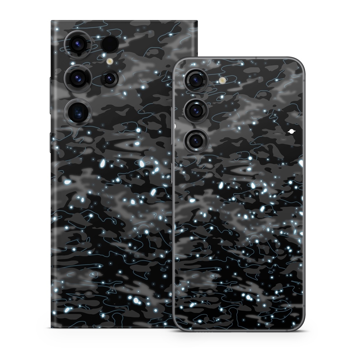 iStyles Samsung Galaxy S23 Series Skin design of Black, Water, Space, Black-and-white, Granite, with blue, white, gray, blue colors, and tagged with space, patterns, black, blue, camo, galaxy, space, stars, universe.