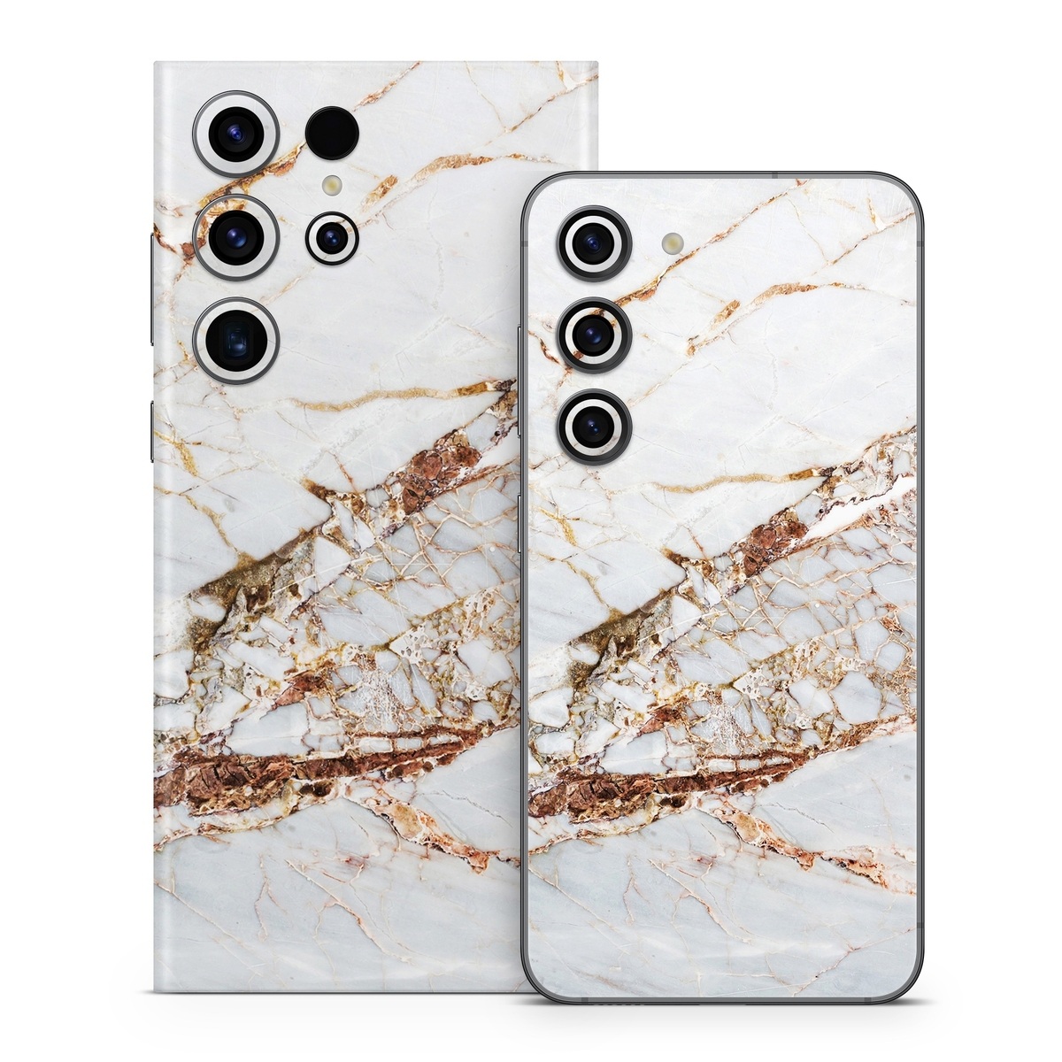 iStyles Samsung Galaxy S23 Series Skin design of White, Branch, Twig, Beige, Marble, Plant, Tile, with white, gray, yellow colors, and tagged with patterns, lookslike, nature.