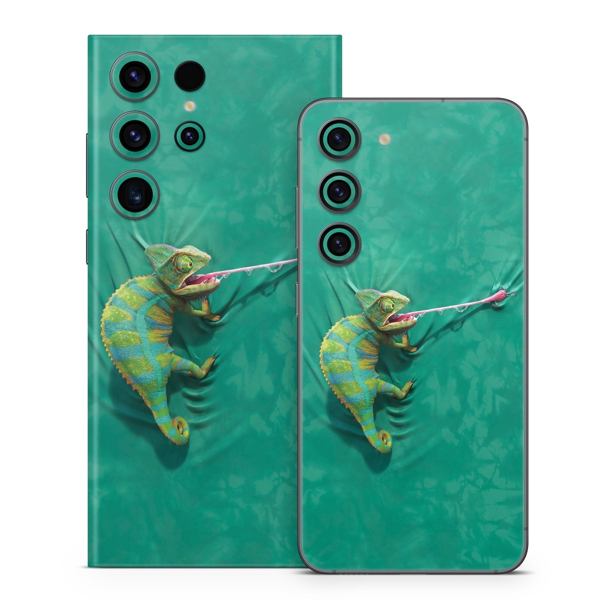 iStyles Samsung Galaxy S23 Series Skin design of Green, Fish, Tail, Chameleon, with blue, black, green, gray colors, and tagged with animals.