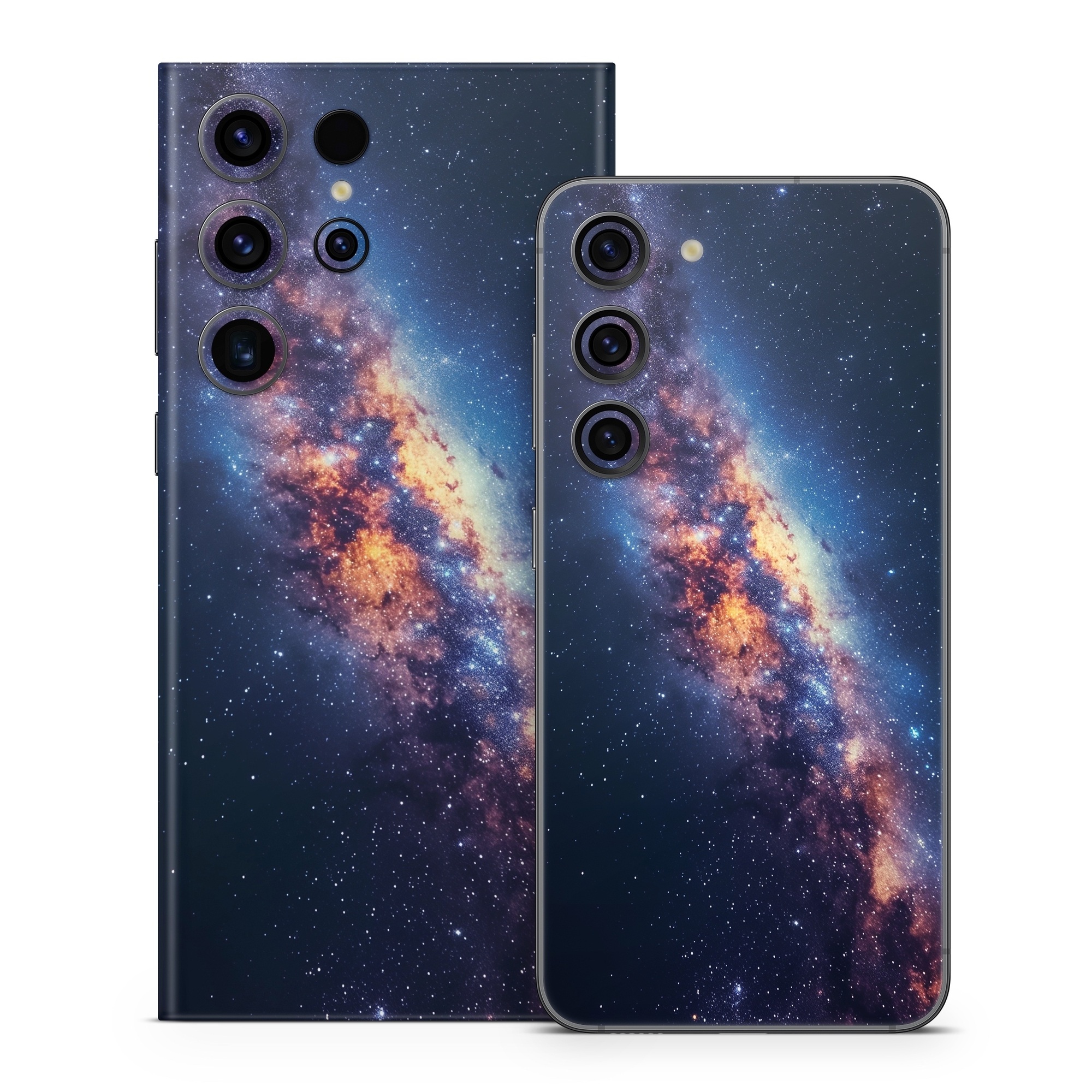 iStyles Samsung Galaxy S23 Series Skin design of Atmosphere, Sky, Nature, World, Nebula, Galaxy, Astronomical object, Atmospheric phenomenon, Milky way, Star, with black, blue, white, yellow, orange, red, purple, gray colors, and tagged with space, space, galaxy, solar, system, far, away.