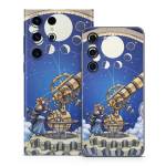 iStyles Samsung Galaxy S23 Series Skin design of Circle, World, Space, Vehicle, Satellite, Illustration, with white, blue, yellow, pink, gray colors, and tagged with people, objects, space, astrology, microscope, outerspace, space, stars.