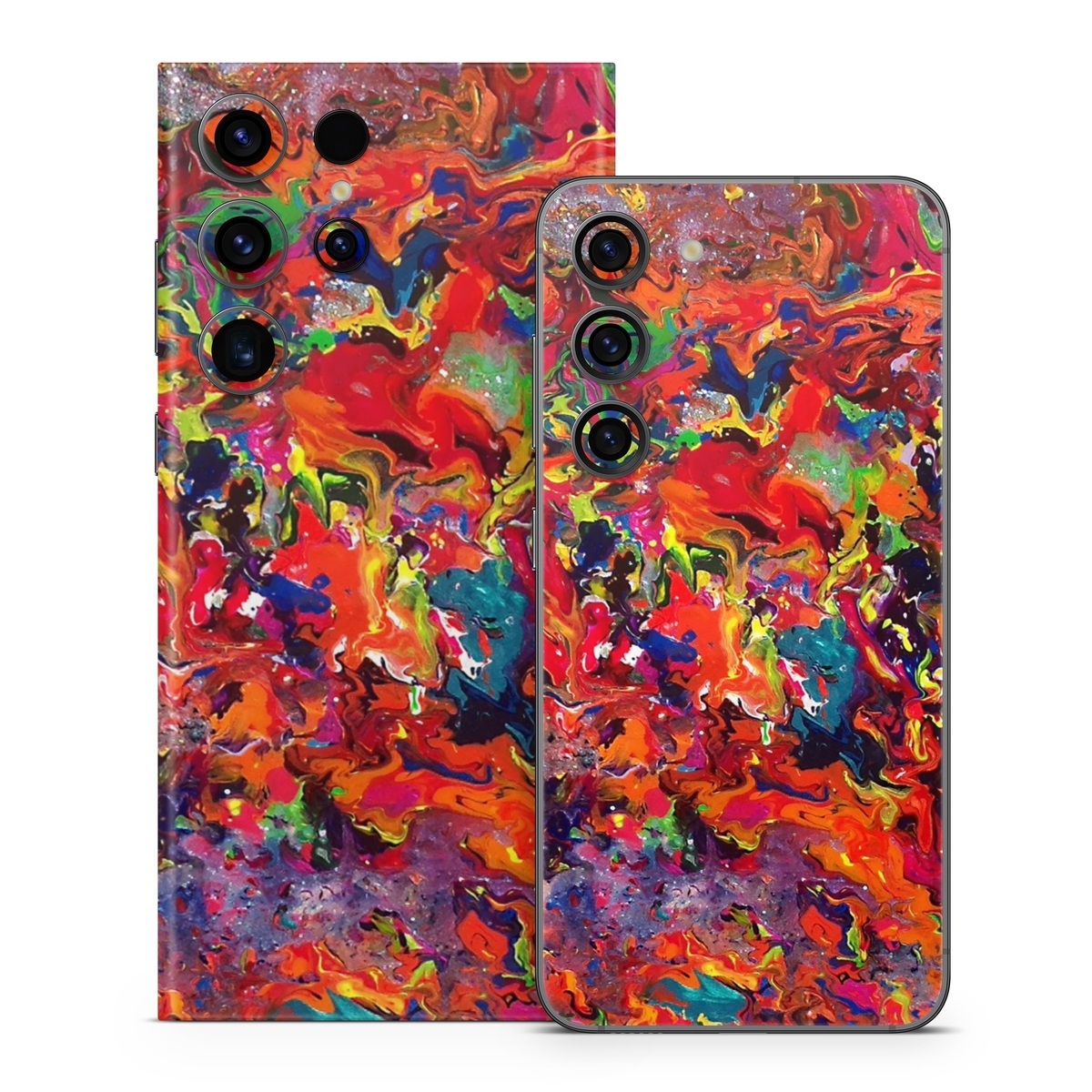 iStyles Samsung Galaxy S23 Series Skin design of Colorfulness, Modern art, Acrylic paint, Painting, Visual arts, Art, Psychedelic art, Textile, Pattern, Paint, with red, yellow, green, orange, yellow colors, and tagged with patterns.