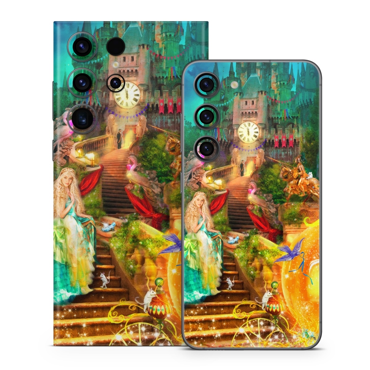 iStyles Samsung Galaxy S23 Series Skin design of Mythology, Adventure game, World, Fictional character, Theatrical scenery, Art, with yellow, orange, blue, green, red, purple, white, black colors, and tagged with fantasy, animals, objects, urban.