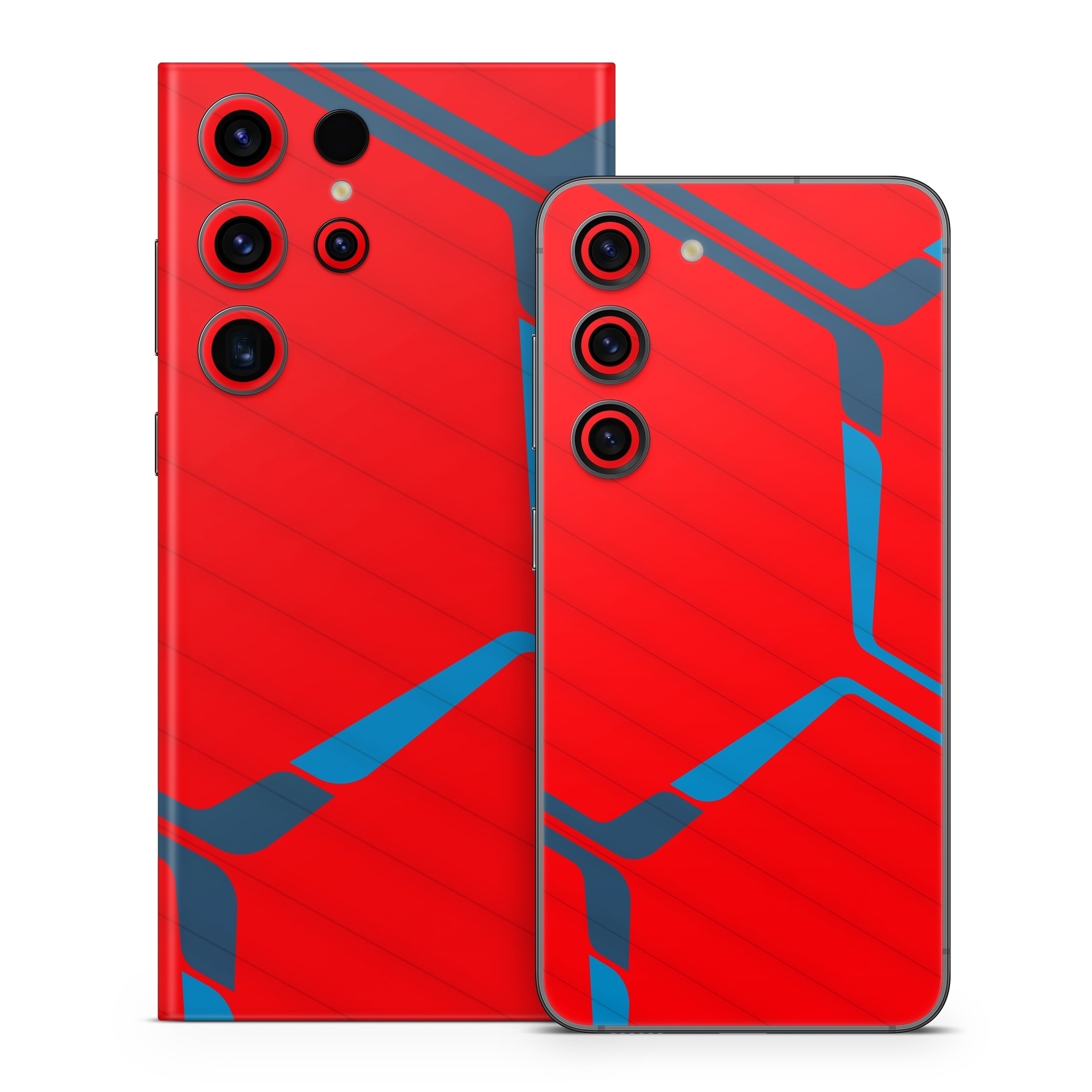 iStyles Samsung Galaxy S23 Series Skin design of Triangle, Font, Rectangle, Tints and shades, Magenta, Electric blue, Pattern, Parallel, Symmetry, Carmine, with red, blue colors, and tagged with patterns, hexagon, pattern, lines.