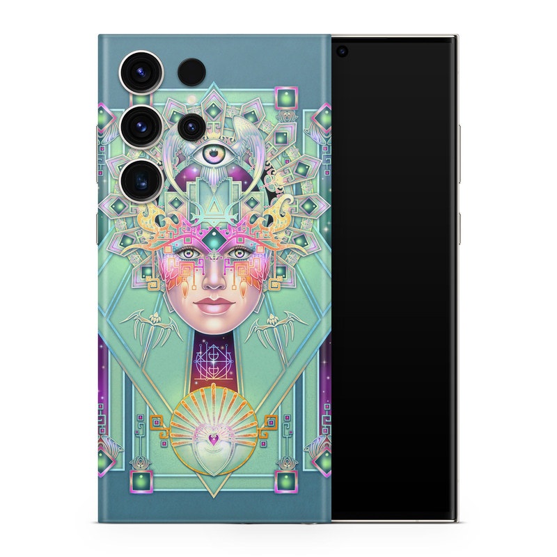 iStyles Samsung Galaxy S23 Series Skin design of Head, Eye, Eyelash, Font, Art, Magenta, Rectangle, Painting, Illustration, Pattern, with blue, green, yellow, red, purple, white colors, and tagged with fantasy, people, signs, objects, eye, wings, thankful.