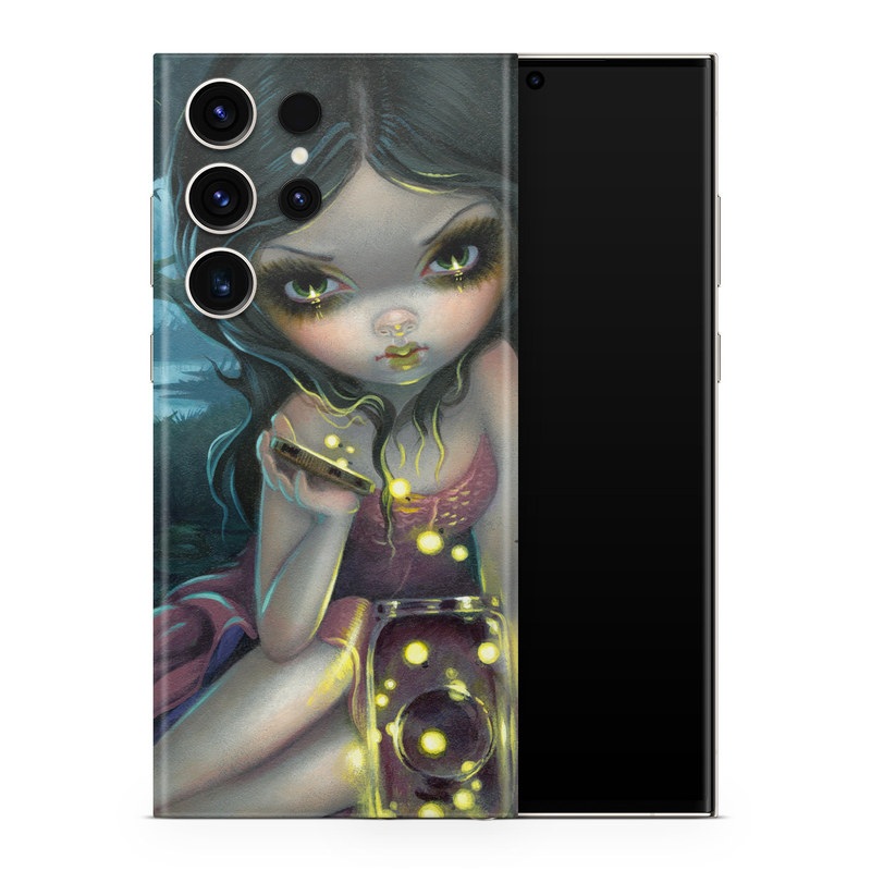 iStyles Samsung Galaxy S23 Series Skin design of Cg artwork, Illustration, Fictional character, Art, Iris, Black hair, Fawn, Mythology, Fiction, with blue, green, pink, yellow, black, white colors, and tagged with people, animals, nature, objects, fantasy, bugs, fantasy, fireflies, swamp.