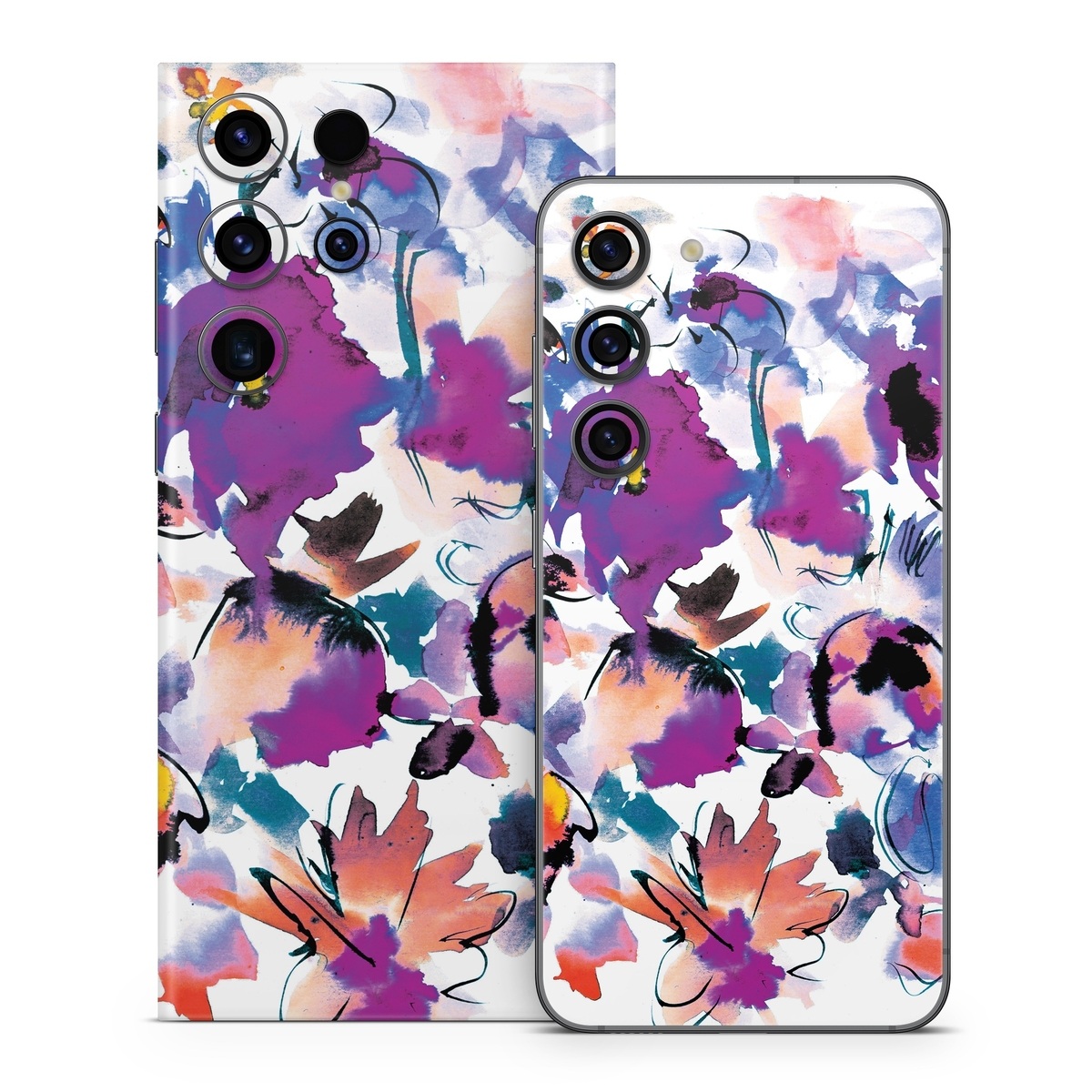 iStyles Samsung Galaxy S23 Series Skin design of Product, Purple, Illustration, Graphic design, Plant, Clip art, Flower, Graphics, Wildflower, Watercolor paint, with white, purple, pink, yellow, blue, black colors, and tagged with flowers, floral, flowers, nature, watercolor.