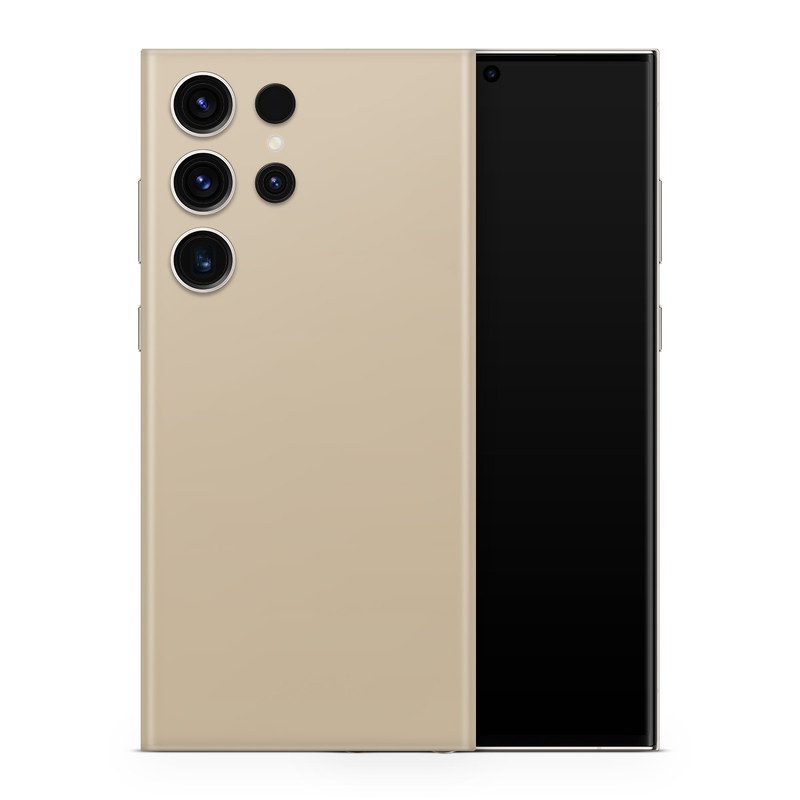 iStyles Samsung Galaxy S23 Series Skin design of Brown, Beige, Pattern, Peach, Font, Rectangle, Event, Brand, Circle, with brown, yellow colors, and tagged with solidcolors, light, sandy, fawn, pale, yellow, brown.