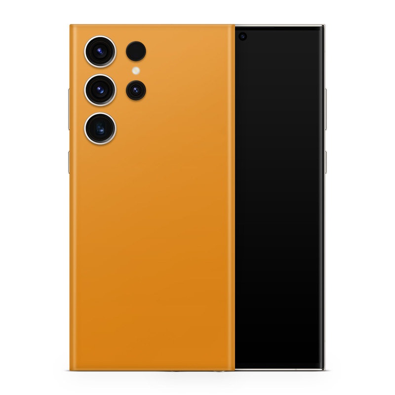 iStyles Samsung Galaxy S23 Series Skin design of Orange, Yellow, Brown, Text, Amber, Font, Peach, with orange colors, and tagged with solidcolors, passion, positivity, youthfulness, optimism, energy, happiness.