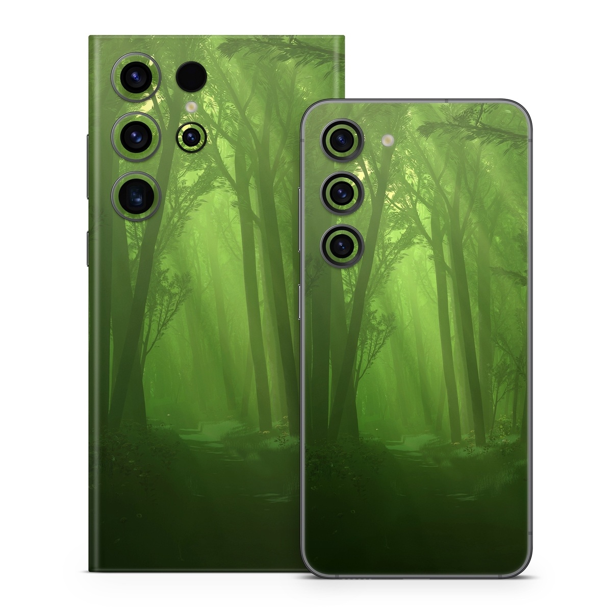 iStyles Samsung Galaxy S23 Series Skin design of Nature, Green, Forest, Old-growth forest, Woodland, Natural environment, Vegetation, Tree, Natural landscape, Atmospheric phenomenon, with black, green colors, and tagged with nature, photos.