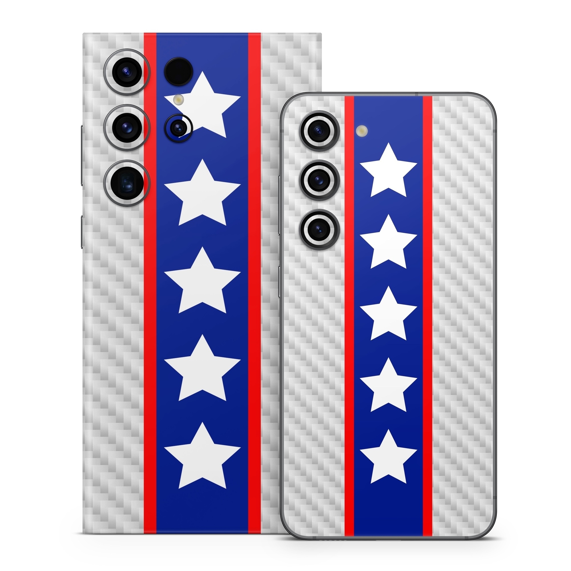 iStyles Samsung Galaxy S23 Series Skin design of Flag of the united states, Flag, Font, Parallel, Electric blue, Rectangle, Pattern, Flag Day (USA), Symbol, Carmine, with gray, white, blue, red colors, and tagged with patterns, lookslike, stars, stripes, car.