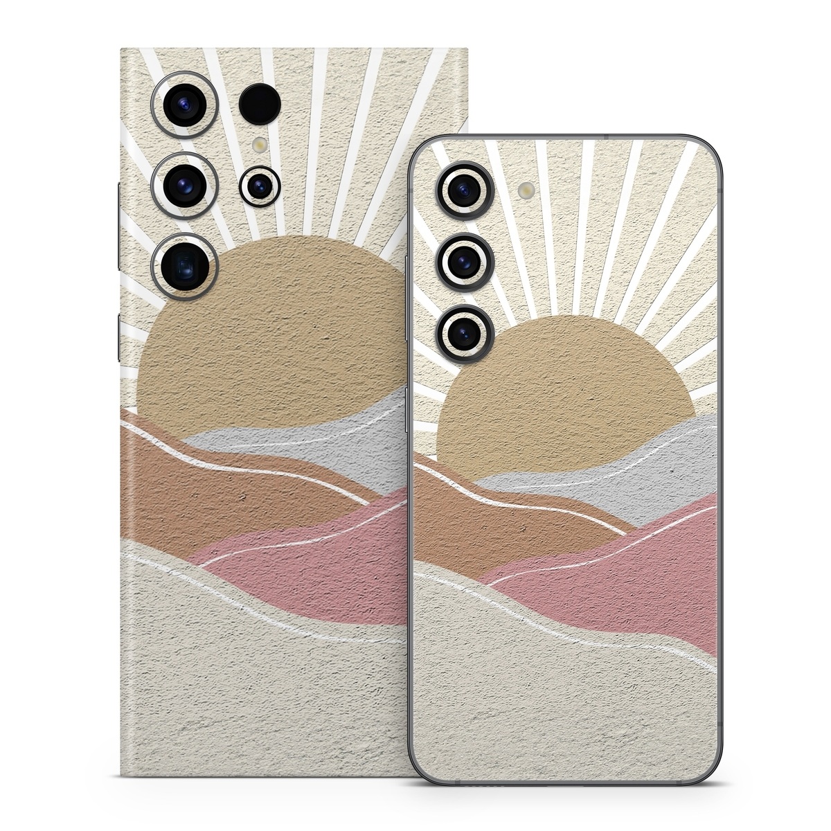 iStyles Samsung Galaxy S23 Series Skin design of Art, Pattern, Symmetry, Tints and shades, Slope, Building material, Circle, Visual arts, Creative arts, Metal, with yellow, pink, gray, white, brown colors, and tagged with nature, sunset, clouds.