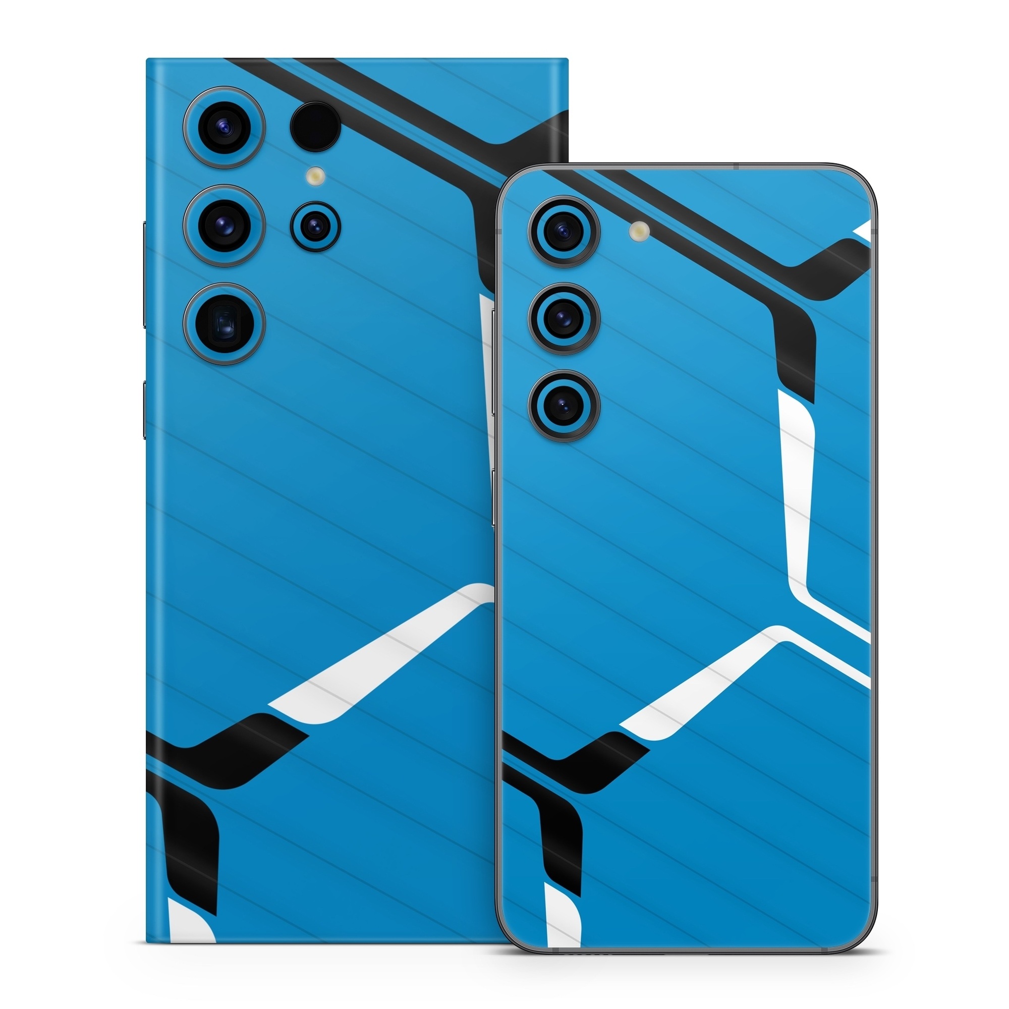 iStyles Samsung Galaxy S23 Series Skin design of Azure, Triangle, Parallel, Font, Electric blue, Pattern, Symmetry, Table, Symbol, Logo, with blue, black, white colors, and tagged with patterns, hexagon, pattern, lines.