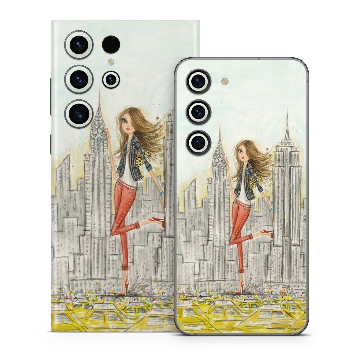 iStyles Samsung Galaxy S23 Series Skin design of Human settlement, Fashion illustration, Illustration, City, Art, Architecture, Drawing, Fictional character, with gray, green, black, red colors, and tagged with people, objects, urban, fashion, fineart.