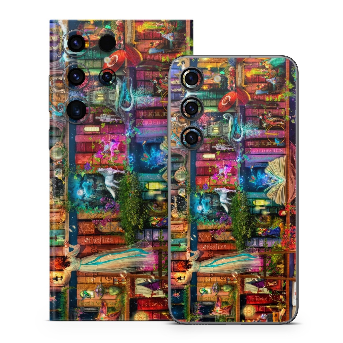 iStyles Samsung Galaxy S23 Series Skin design of Painting, Art, Theatrical scenery, with black, red, gray, green, blue colors, and tagged with patterns, animals, people, objects, nature, fantasy, space.