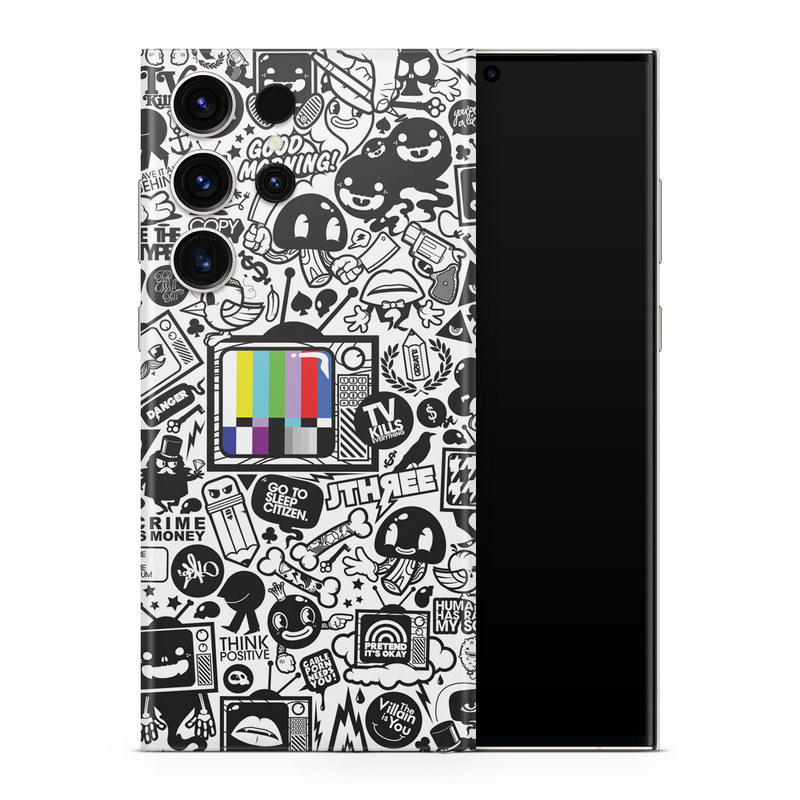 iStyles Samsung Galaxy S23 Series Skin design of Pattern, Drawing, Doodle, Design, Visual arts, Font, Black-and-white, Monochrome, Illustration, Art, with gray, black, white colors, and tagged with patterns, objects.