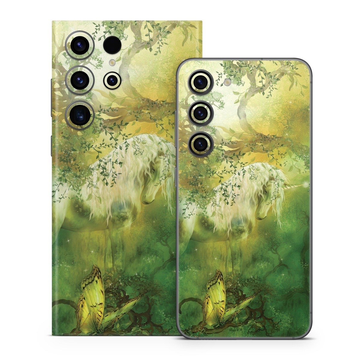 iStyles Samsung Galaxy S23 Series Skin design of Nature, Green, Painting, Art, Visual arts, Watercolor paint, Illustration, Modern art, Still life, with green, black, gray colors, and tagged with animals, nature, animals, butterfly, forest, nature, unicorn.