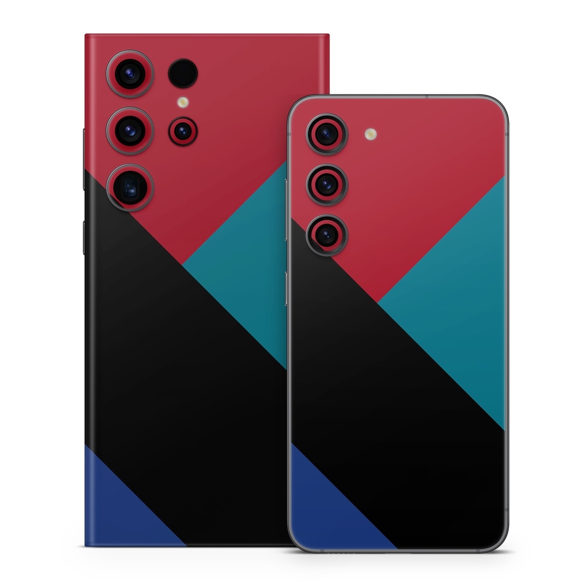 iStyles Samsung Galaxy S23 Series Skin design of Blue, Green, Turquoise, Azure, Teal, Electric blue, Line, Pattern, Design, Graphic design, with black, blue, red colors, and tagged with patterns, block, blocking, color, colorblock, geometric, shape, simple.