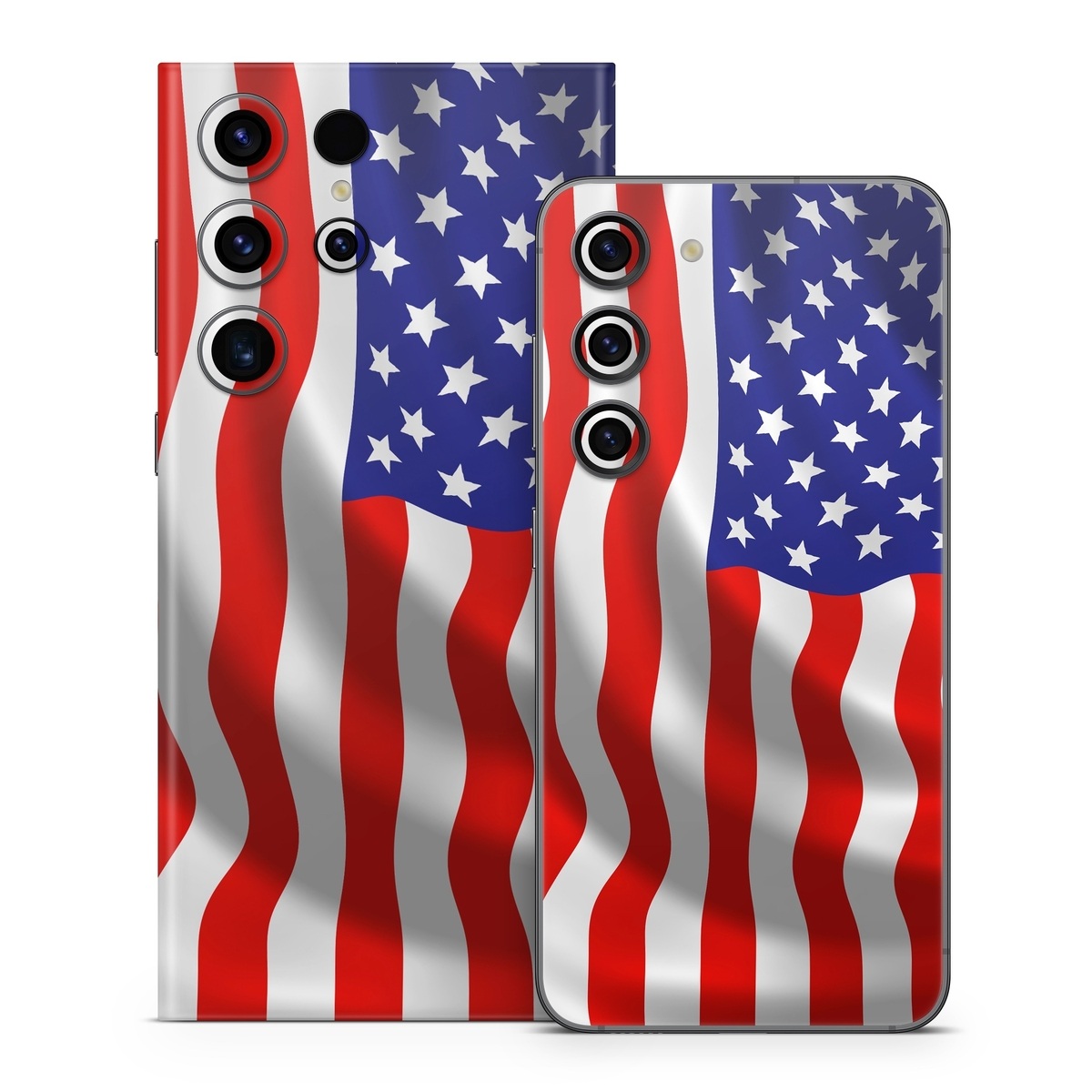 iStyles Samsung Galaxy S23 Series Skin design of Flag of the united states, Flag, Flag Day (USA), Veterans day, Independence day, Memorial day, Holiday, with gray, red, blue, black, white colors, and tagged with flags.