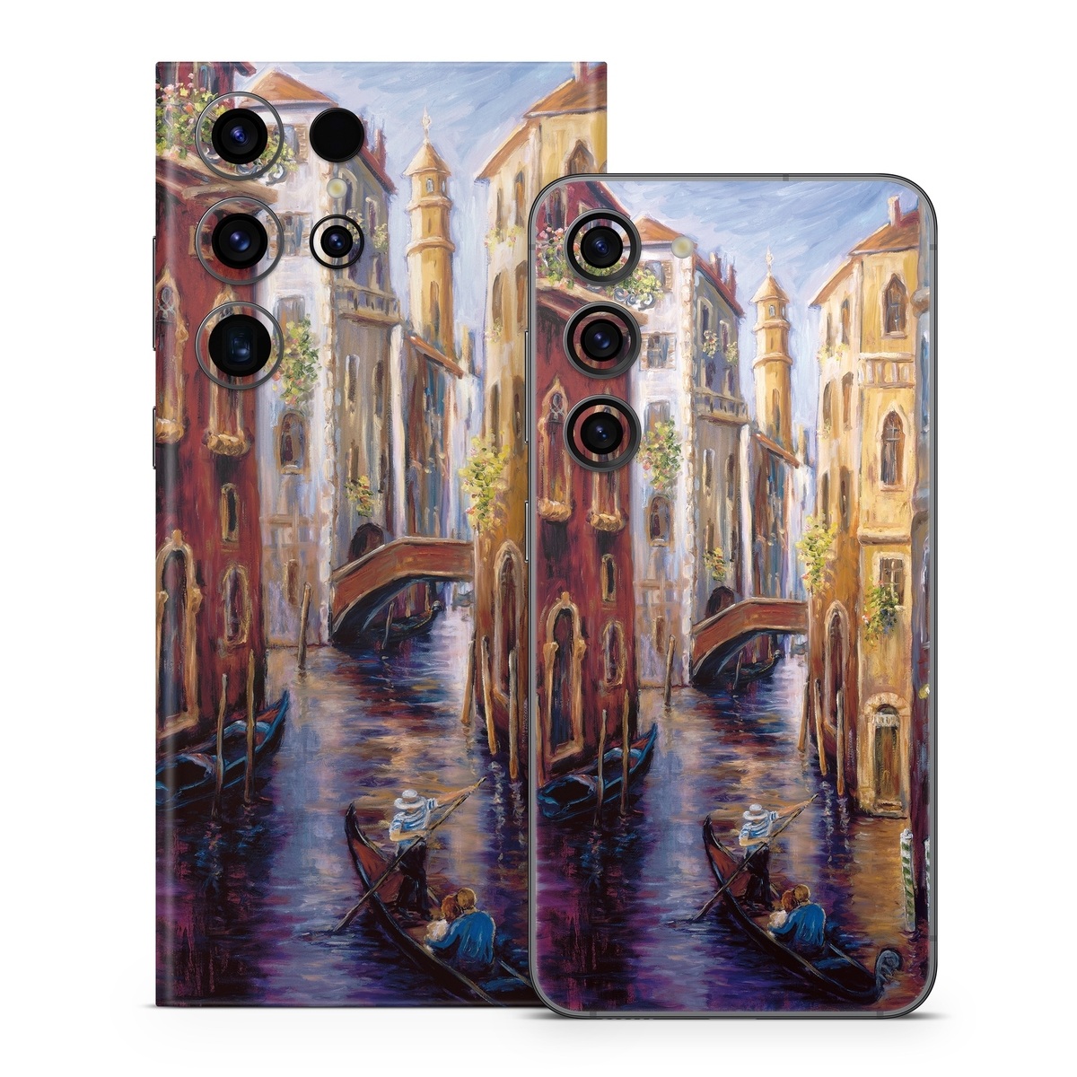 iStyles Samsung Galaxy S23 Series Skin design of Painting, Watercolor paint, Waterway, Gondola, Canal, Art, Modern art, Acrylic paint, Visual arts, Building, with black, gray, red, green, blue, pink colors, and tagged with fineart, urban.