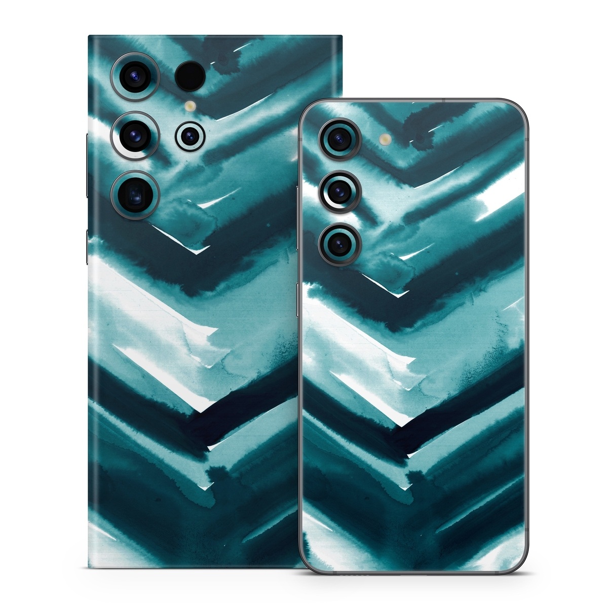 iStyles Samsung Galaxy S23 Series Skin design of Blue, Green, Turquoise, Aqua, Teal, Photography, Pattern, with blue, white, black colors, and tagged with patterns, chevron, watercolor.