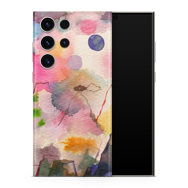 iStyles Samsung Galaxy S23 Series Skin design of Watercolor paint, Flower, Textile, Painting, Art, Plant, Pattern, Visual arts, Floral design, Paint, with white, pink, red, yellow, green, blue, black, orange colors, and tagged with patterns, nature, abstract, abstract, bright, colorful, landscape, mountains, nature, watercolor.