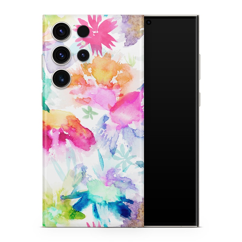 iStyles Samsung Galaxy S23 Series Skin design of Art paint, Botany, Paint, Petal, Painting, Creative arts, Art, Line, Material property, Pattern, with white, blue, green, red, pink, purple, yellow colors, and tagged with patterns, flowers, abstract, paint, painting, splatter, spring, stamp, watercolor.