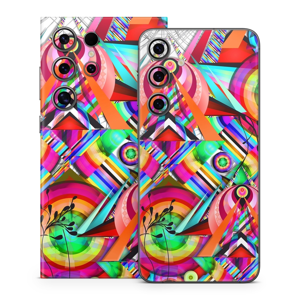 iStyles Samsung Galaxy S24 Series Skin design of Psychedelic art, Pattern, Design, Graphic design, Colorfulness, Visual arts, Circle, Art, with red, pink, green, yellow, orange colors, and tagged with patterns, abstract.