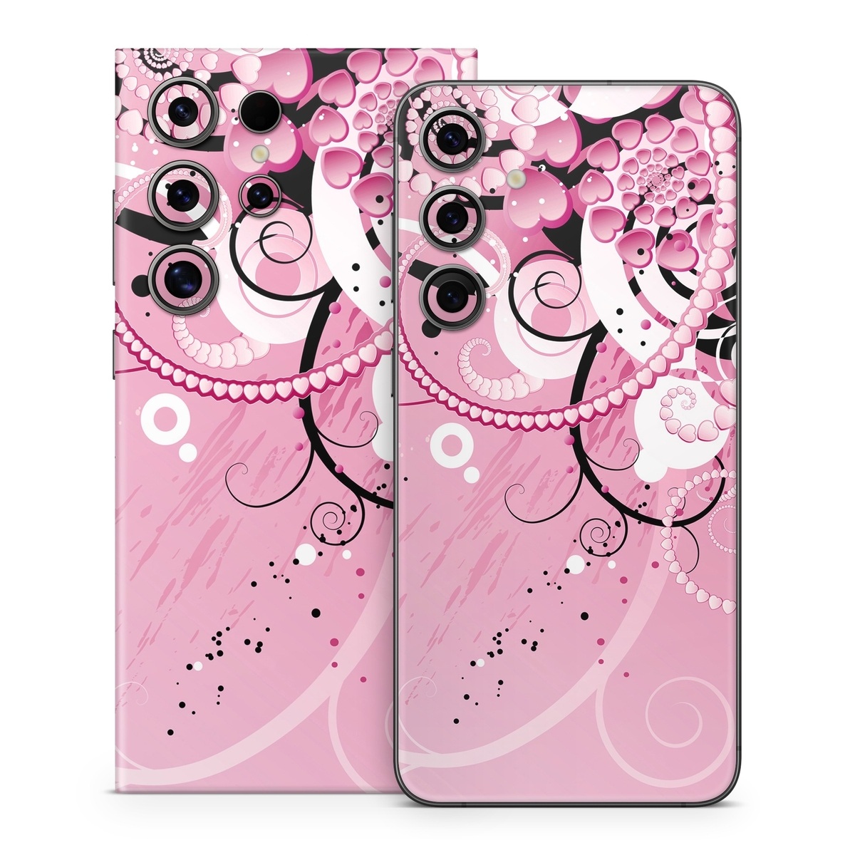 iStyles Samsung Galaxy S24 Series Skin design of Pink, Floral design, Graphic design, Text, Design, Flower Arranging, Pattern, Illustration, Flower, Floristry, with pink, gray, black, white, purple, red colors, and tagged with abstract, hearts.