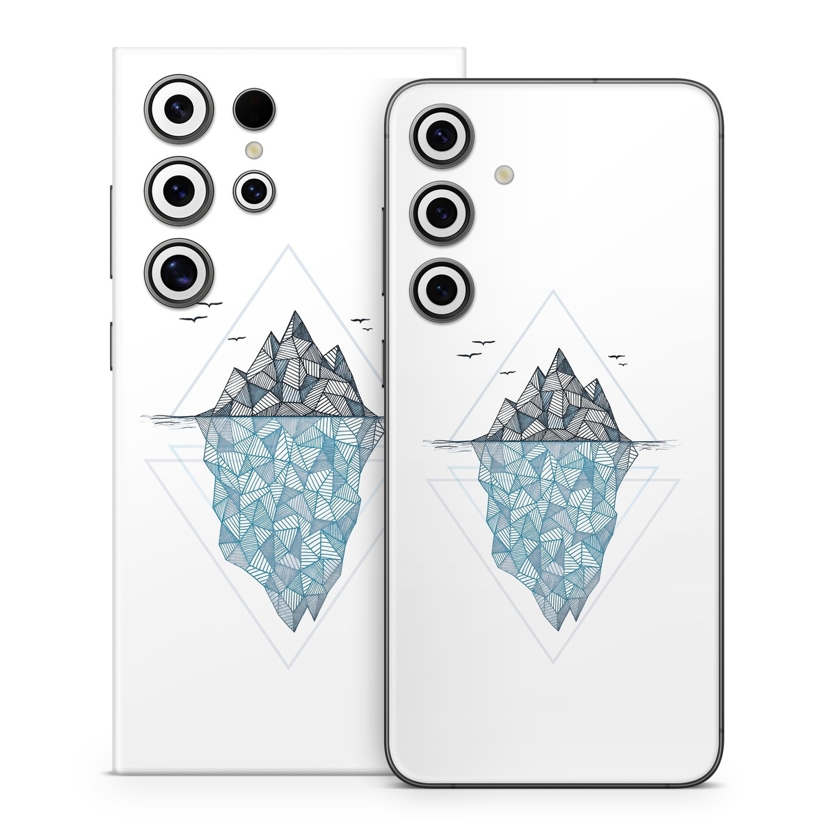 iStyles Samsung Galaxy S24 Series Skin design of Line, Illustration, Design, Symmetry, Pattern, Triangle, Art, with white, black, gray, blue colors, and tagged with animals, nature, patterns, arctic, blue, cold, frost, ice, iceberg, snow, winter.
