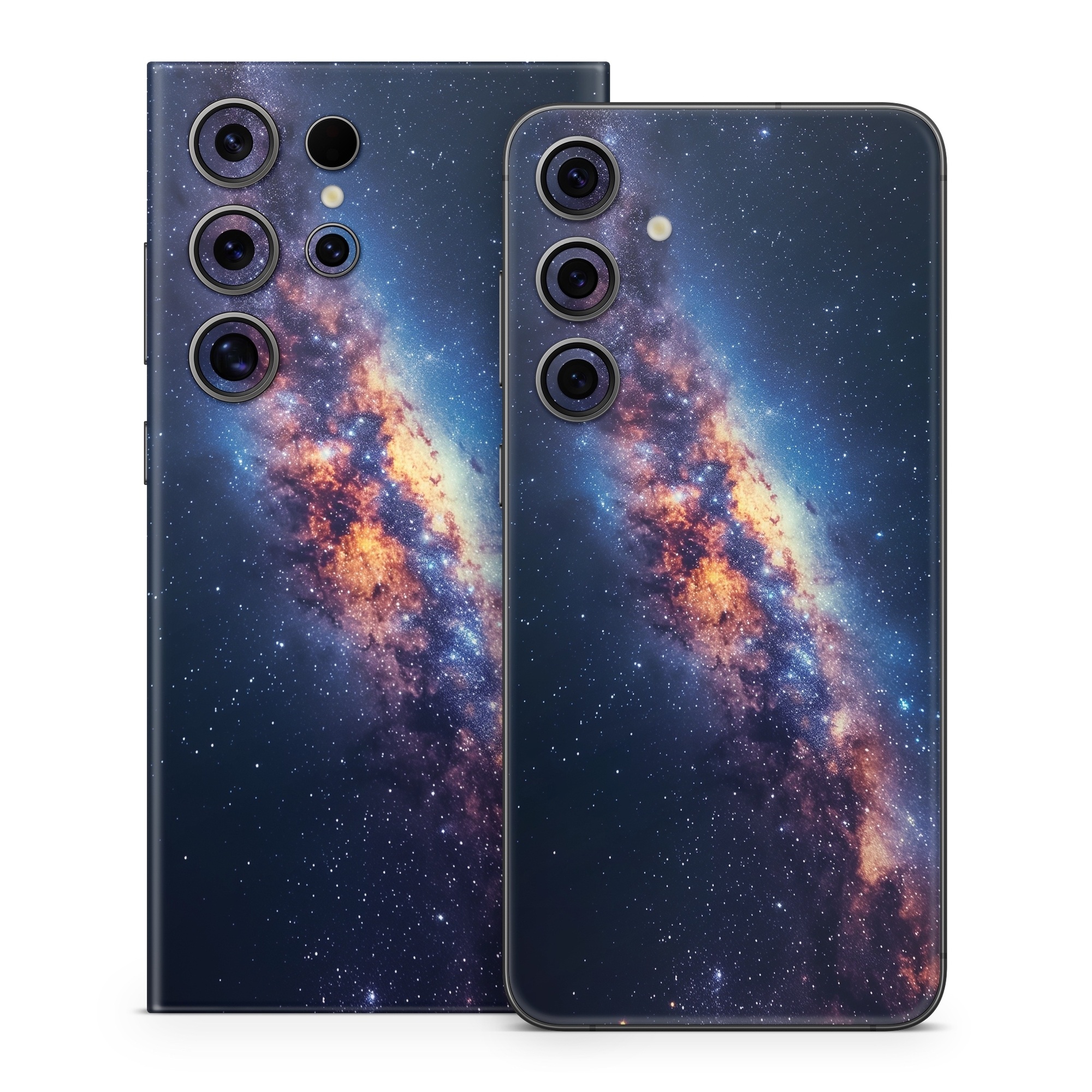 iStyles Samsung Galaxy S24 Series Skin design of Atmosphere, Sky, Nature, World, Nebula, Galaxy, Astronomical object, Atmospheric phenomenon, Milky way, Star, with black, blue, white, yellow, orange, red, purple, gray colors, and tagged with space, space, galaxy, solar, system, far, away.