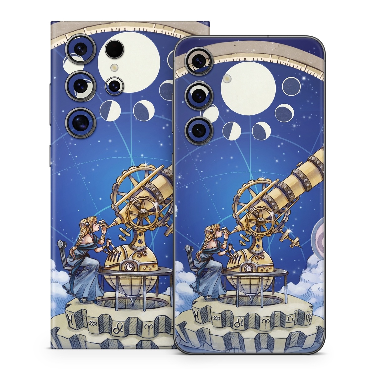 iStyles Samsung Galaxy S24 Series Skin design of Circle, World, Space, Vehicle, Satellite, Illustration, with white, blue, yellow, pink, gray colors, and tagged with people, objects, space, astrology, microscope, outerspace, space, stars.